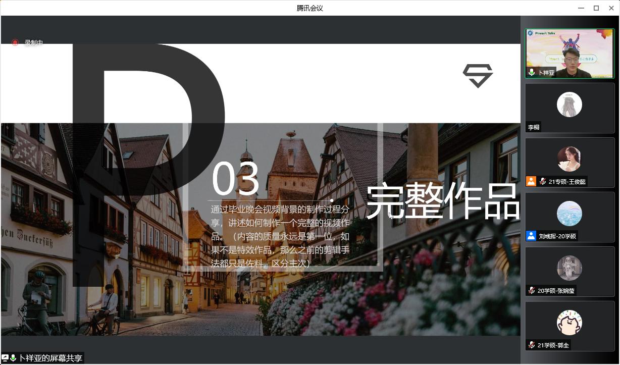 2022年3月18日下午三点,由yl6809永利官网研究生会学术科创中心主办的第二期PowerX Talks研究生书画摄影主题讲座通过腾讯会议线上平台成功举办。本期讲座邀请到了艺术学院2020级研究生王晓甜与我院2021级研究生卜祥亚主讲,分享自己的绘画鉴赏与摄影剪辑心得,本次讲座由学术科创中心王俊懿主持。
