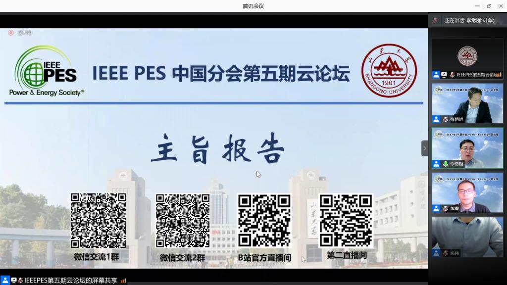 2021年3月28日,由IEEE PES中国分会主办,IEEE PES济南分会、电网智能化调度与控制教育重点实验室(山东大学)承办,IEEE PES电力系统动态技术委员会(中国)协办的IEEE PES中国分会“Power & Energy云论坛”——新形态电力系统安全稳定专题论坛圆满召开。论坛主题围绕“新形态电力系统安全稳定”展开,旨在促进电力与能源领域专家学者对当下热点问题的交流,分享新形态电力系统安全稳定领域的研究成果。
