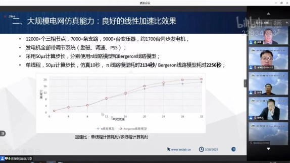 在最后的圆桌讨论环节中,张恒旭教授首先对前述报告作了深入浅出的总结与高度评价。随后,南瑞稳定公司李威博士对大电网安全稳定分析作了介绍;张恒旭教授与孙凯教授从更高层面出发就半解析法的学术思想进行了丰富的讨论;熊卿博士针对互动环节观众提出的有关全电磁暂态仿真问题做出了全方位的解答以及对后续工作的展望等。