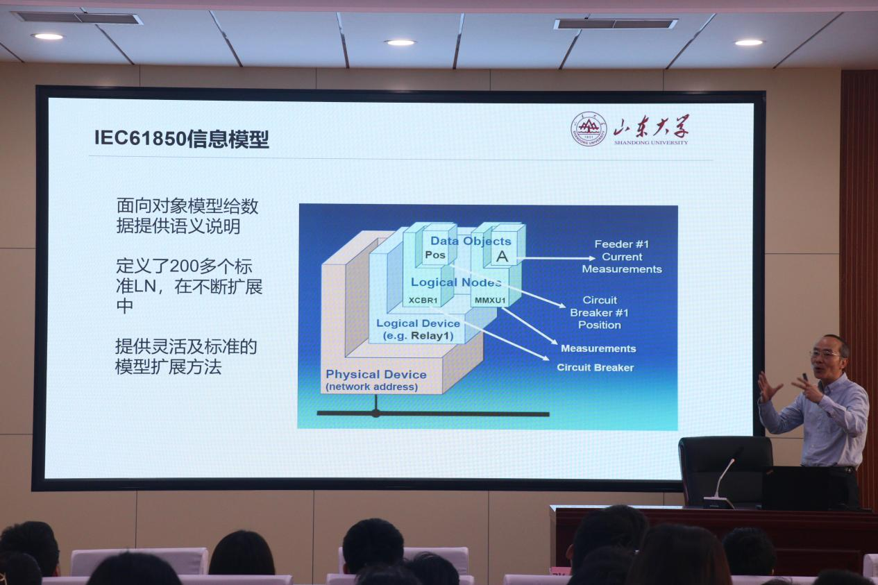本次讲座李惠民博士针对国家2030年碳达峰、2060年碳中和的目标,探讨了如何充分运用包括IEC61850规范、人工智能与物联网技术、边缘计算及云计算等技术,来支撑包含新型源荷的、分布式互动的新一代智慧电网。首先,李博士简单介绍了自己的教育工作经历,并通过总结华为公司提出的包括能源数字化、绿电无处不在、全链路高效、AI加持等在内的数字能源十大趋势,引出目前新型智能电网研究的重点。第一部分,李博士介绍了IEC61850及其应用,他表示传统通信规约以及现有的网络与控制中心的信息共享困难等问题决定了IEC61850研究的必要性,并详细介绍了IEC61850的应用范围、通讯接口、变电站配置语言(SCL)、如何实现监控、文件直接传递和服务接口传递两种客户端配置方法等问题,使得现场同学对基于SCL配置的智能化、自动化工程以及智能电网的信息交互等都有了一定了解,同时,李博士还介绍了基于IEC61850的完整电气智能化方案以及他们研究的一些成果,使同学们收获颇多。第二部分,李博士着重介绍了人工智能技术与深度学习在智能电网方面的运用,包括数据服务与AI模型优化的全周期、用深度学习进行非侵入性电量监测、基于RNN的数据处理与分析过程、智能视频处理系统及其主要功能、深度智能视频处理技术架构、配电柜智能视频监控、高压电器紫外成像分析系统、高压电器缺陷分析等。第三部分,李博士介绍了基于云技术的智联网(AIoT),在现有智联网基础上讲解了AIoT平台开发总体架构与开发模式。第四部分,李博士提出了一些开发互动新型电网中的应用展望,包括智能轨道交通电力自动化系统和基于智联网的分布式能源管理系统(DERMS),最后通过一个实际运行的分布式能源案例来介绍了DERMS的实际应用。