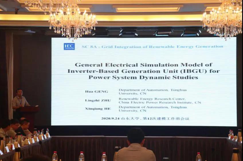 下午,耿华教授做了“用于电力系统动态分析的通用电力电子接口电源仿真模型”的报告;许寅教授做了“计及换相失败的高压直流输电系统动态平均化建模及应用”的报告;李卫星教授做了“新能源电站通用聚合等值建模方法”的报告;闫虹高工做了“金风风电机组并网仿真建模工作全景概述”的报告。