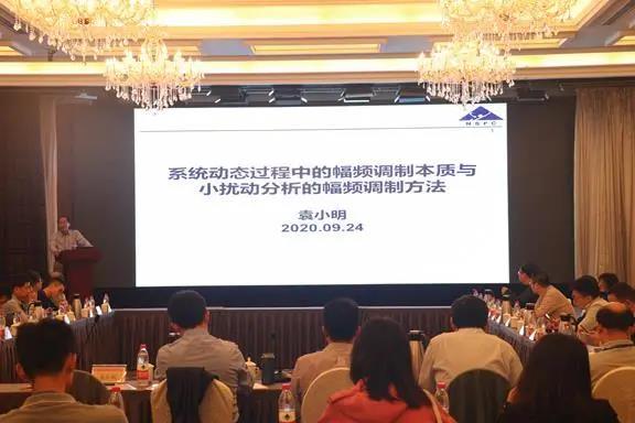 此次会议聚焦高比例新能源大规模并网问题,分析讨论了故障穿越、小扰动、以及风电机组数学模型等一系列问题。上午,袁小明教授做了“系统动态过程的幅频调制本质与小干扰分析的幅频调制方法”的报告;辛焕海教授做了“新能源广义短路比”的报告;王铁柱工程师做了“高比例新能源电力系统运行特性及安全挑战”的报告;山东大学丁磊教授做了“双馈风电机故障暂态主动支撑”的报告,介绍了团队在故障暂态主动支撑方面的工作。