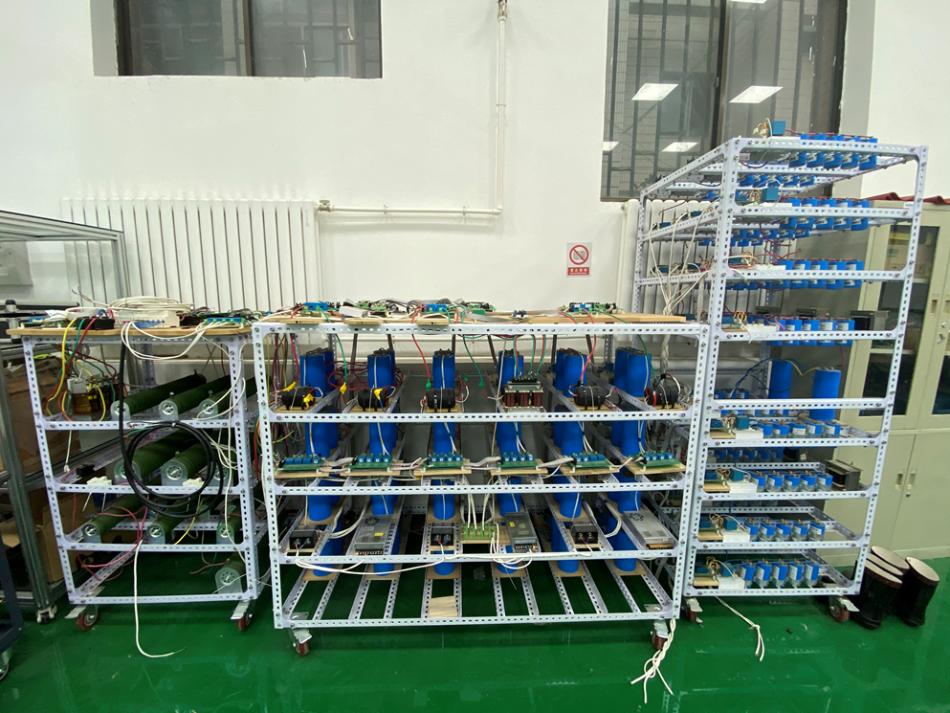 中高压直流配电仿真平台以模块化多电平换流器样机为核心,该平台控制器采用多块主频200MHz浮点型DSP芯片协同工作的方式,可实现复杂控制策略,用以模拟多端直流配电网,分布式光伏、直流负荷等分别接入,通过控制系统中的参数、改变控制策略,研究不同工况下直流网络运行特点,为研究中高压压直流配电的运行机理,故障保护和协调控制方法提供物理实验环境。