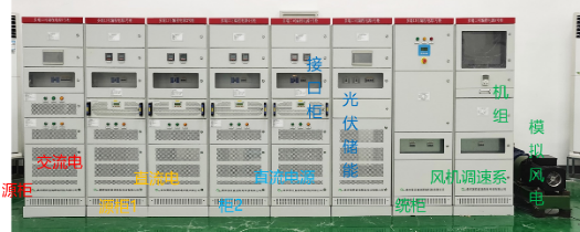 多功能多端口可编程电源包括五个编程电源柜、一个光伏储能接口柜、两个风机调速系统柜及模拟风电机组。