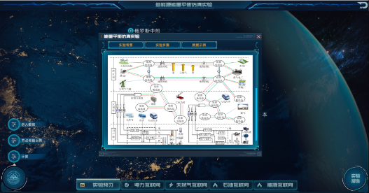 全球能源互联网存在能源传输路径复杂、多种能源并济、综合能源理论相对抽象等特点,教学内容难度相对较大。由此,亟需通过实验教学手段,提升学生对于知识的直观理解。然而,由于跨国能源互联网规模庞大、跨度很广,难以通过实物仿真的手段进行实验。为此,开发数据实时传输、后台真实存储的东北亚能源互联网虚拟仿真平台,填补跨国能源互联网实验教学的空白,开发中英文双语版本(图2),适应国内外相关人才的培养需求,提升学生对于跨国能源互联的直观理解。