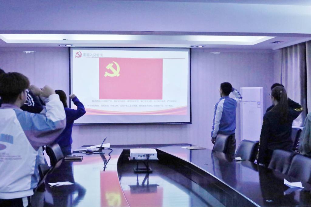 活动第四部分,由陆双庆同志带领支部全体党员进行宣誓,洪亮的入党誓词响彻在电力楼六楼,虽然誓词很短,但党员同志们努力提升自己,帮助他人的信念越来越深。
