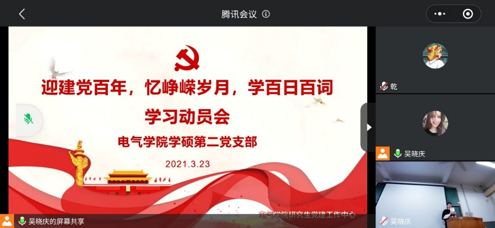 本次党史学习教育开展时间为2021年3月23日至6月31日,共计100天,以《百年党史关键词》书籍为学习内容,关键词包括民主革命、社会主义建设、改革开放、中国特色社会主义等时期,分别对其重大意义的政策、方针等论述、解读进行学习。我院研究生以党支部为单位,将通过线上讨论、推送、小组学习等方式,由党支书带领支部同学学习,以周为单位,每周学习七个关键词,100天内将书中100个关键词全部学习完成。