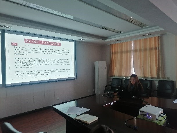 会议第三项,支部继续开展系列党史学习教育,本次由第六组和第七组来进行党史学习内容分享。在第六学习小组的分享中,组长杨金叶以即将到来的南京大屠杀死难者国家公祭日为背景,对南京大家大屠杀历史进行了回顾。接着,她播放了一段历史题材的动画片《那年那兔那些事儿》,并分享给各位支部成员,希望大家换一种形式更轻松的学习党史。她指出,对于这段历史,永忆金陵殇,吾辈当自强。在第七学习小组的分享中,组长孙靓雨向大家推荐了一部影视作品《觉醒年代》,她以《觉醒年代》为载体向支部成员讲述了从新文化运动、五四运动到中国共产党建立的革命历史。她表示,《觉醒年代》是为庆祝中国共产党成立100周年推出的历史题材作品。以新文化运动、五四运动为核心,以陈独秀、李大钊等先驱为视角,展现的一幅波澜壮阔的历史画卷。作品所展现的追求真理、燃烧理想、我将无我、奋斗终生的意志品质,能够激励我们当代青年党员不断思索,勇敢前行。该作品是一部优秀的影视作品,非常值得各位同志作为党史学习的素材。