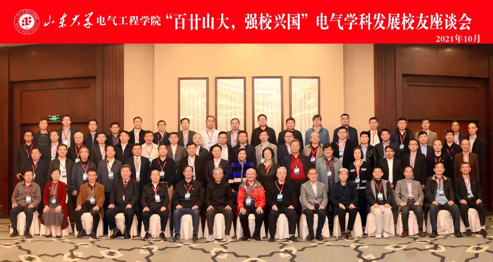 为庆祝山东大学建校120周年暨电气工程学科创办75周年,yl6809永利官网于2021年10月14日在学府大酒店举办了“百廿山大,强校兴国”电气学科发展校友座谈会。会议由学院党委书记刘相宜主持并致辞,常务副院长张恒旭汇报学院发展情况。全体返校校友,部分学院老领导、老教师,合作单位特邀嘉宾,部分教师及学生代表等近百人参加座谈会。座谈会上,全体与会代表一起观看了“百廿山大栉风沐雨,七五电气薪火相传”院史回顾视频,在老教师、校友发言环节,与会电气校友、老教师依次发言,表达对母校的美好祝福。本次校友座谈会提供机会让电气师生校友再次相聚,同时激励学院师生不辜负校友和老教师的期望,用更加努力的工作,更加有力的成绩回报广大电气校友的支持和厚爱,创办国际一流、国内领先的电气学科,谱写强院兴校的崭新篇章。
