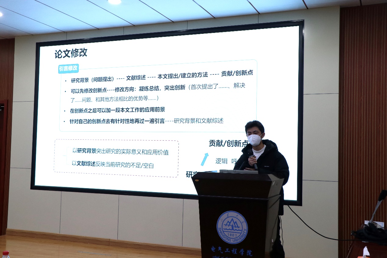 马后震向同学们分享了自己的论文修改经验,对文章各个部分的修改方法提出了自己的独特见解,同时以自身的投稿经历为例介绍了期刊选择和投稿的详细流程。