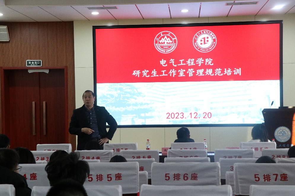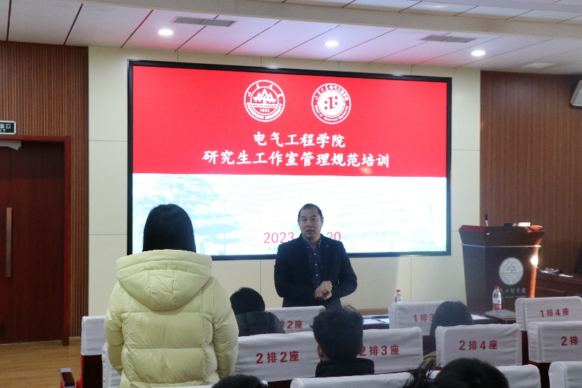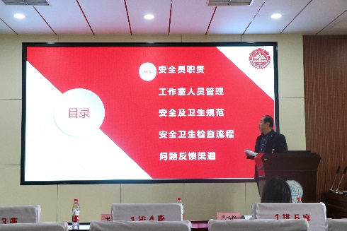 培训会开始,宋济平为大家解读了《yl6809永利官网研究生工作室管理规范》,详细讲解了安全员职责、工作室人员准入准出机制、安全及卫生规范、检查流程以及问题反馈渠道。借助丰富的历史案例、图片重点介绍工作室存在的不足之处,介绍了工作室安全卫生检查流程与问题反馈渠道。宋济平强调,必须高度重视研究生工作室的安全与卫生工作,全面深入排查工作室潜在风险,将危险扼杀在摇篮中;工作室建立完善的卫生管理制度,营造安全、整洁、舒适的科研学习环境。
