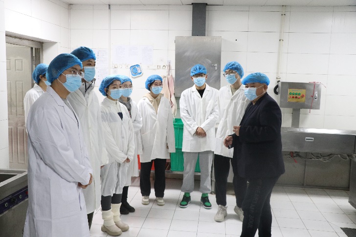接下来在工作人员的带领下,同学们走进食堂后厨进行参观。整洁的环境,整齐摆放的工具、井然有序的备餐流程让同学们称赞不已。