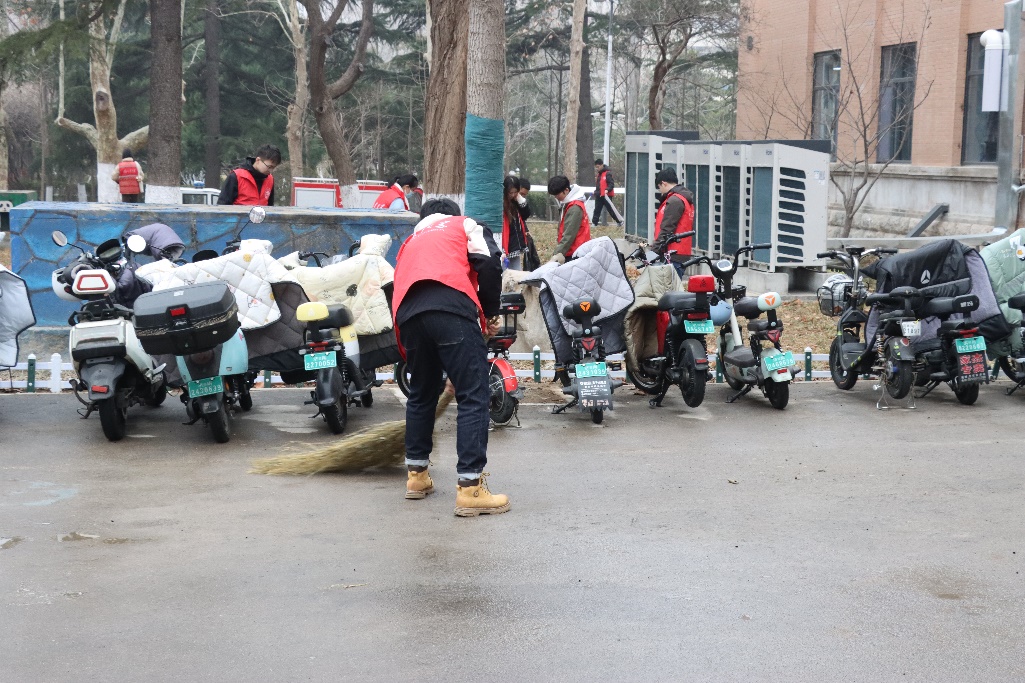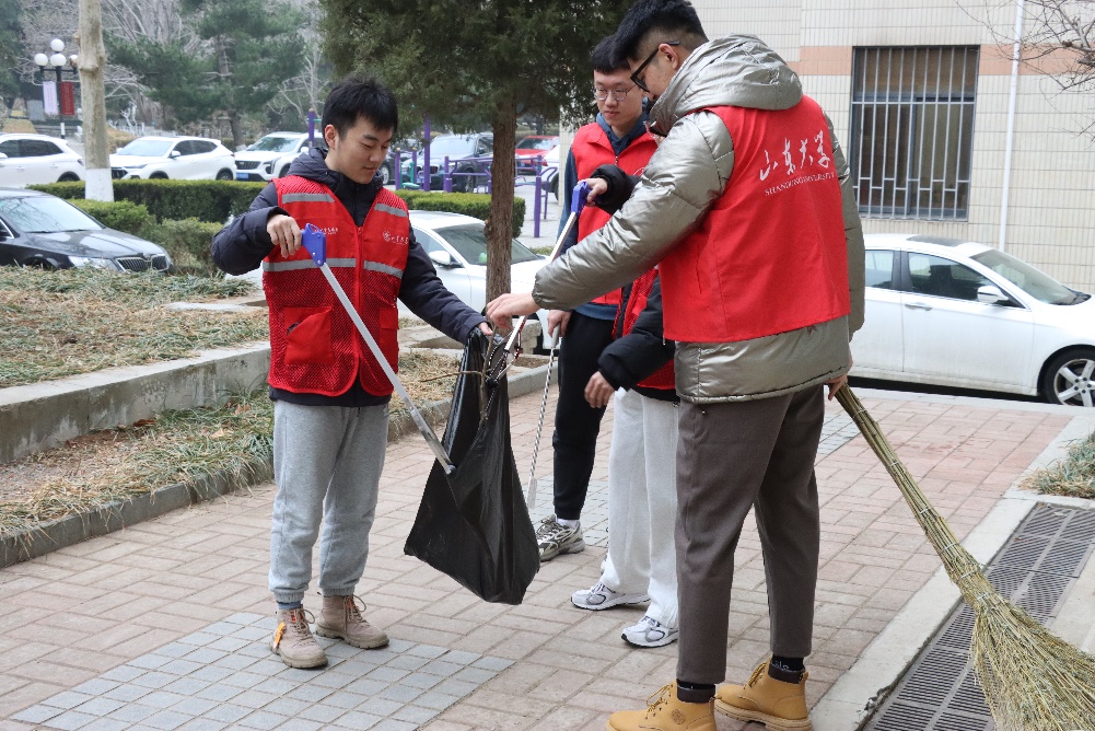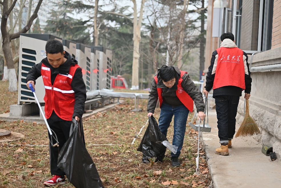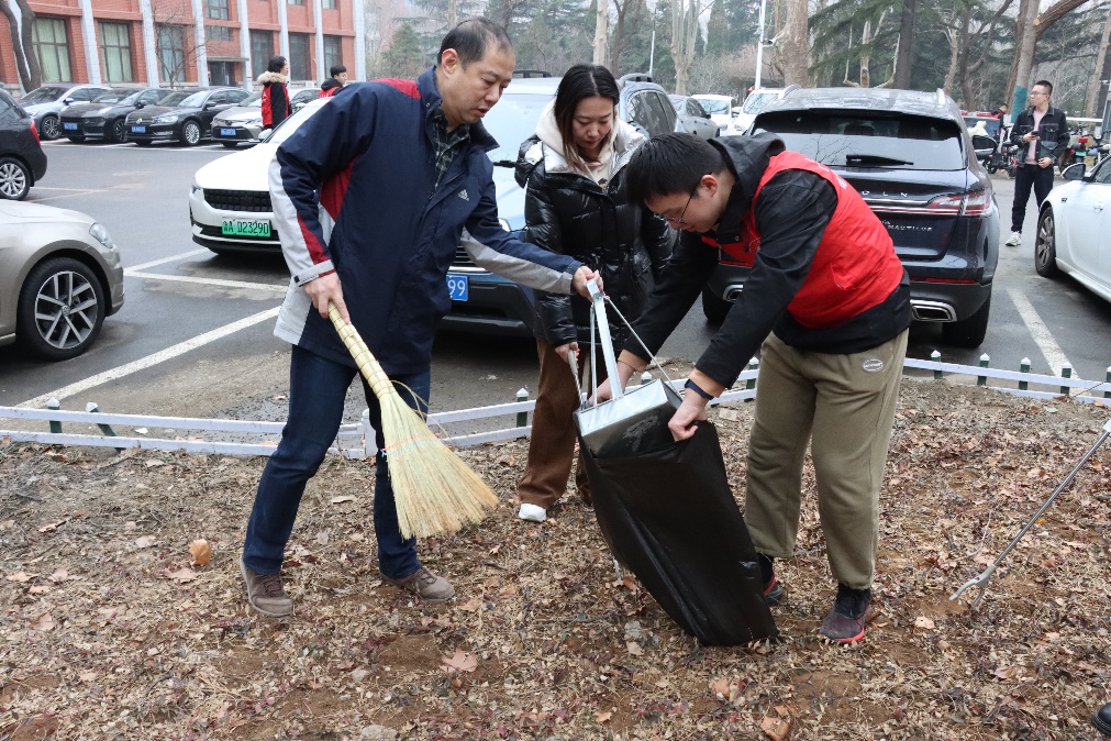 下午3时,志愿者们准时到达劳动区域集合。启动仪式后,志愿者们于劳动区域开展了校园义务清洁,对校园内的花坛及路面进行了清扫,为打造美好校园环境贡献自己的力量。志愿者们拿起扫把、垃圾夹等工具,分工明确,干劲十足。尽管春寒料峭,并伴随着小雨飘落,但同学们热情不减,热火朝天的劳动场景为校园增添了不少暖意。经过一个多小时紧张有序的劳动,花坛与道路变得干净整洁,焕然一新,不仅为师生提供了更加舒适的学习与工作环境,还带来了雷锋精神的春风,鼓舞和激励同学们将劳动落实到生活中的每个细节。
